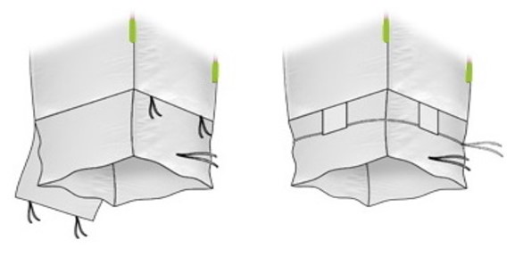 Los big bags pueden llevar diferentes tipos de fondos y descarga, según el sistema de descarga que el usuario final le asigne.
